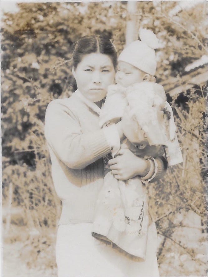 As a matter of fact, Masako arrived about a month before the expected due date. It was a sunny day, so Yoshiko was outside their small house hanging laundry. Masako’s father, a traveling salesman, was on the road, so Yoshiko was alone. While draping wet clothes on the laundry pole Yoshiko felt a stirring in her abdomen and sat down on the engawa that ran along the side of the house. She almost immediately started going into labor and called for help. A neighbor who was passing by went to fetch the midwife. Yoshiko later told Masako that the delivery was painless. She just “popped out.” This circumstance would come to characterize Yoshiko, who, as it turned out, could become pregnant rather easily, giving birth to three more children much later, the last one when she was 46, all of them at home and with little if no assistance. In the meantime she would also undergo abortions, suffer several miscarriages, and survive one ectopic pregnancy.